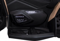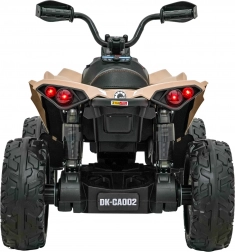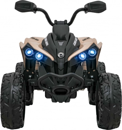 De robuuste elektrische kinderquad Maverick ATV in khaki biedt jonge bestuurders een echte offroad-ervaring. Twee krachtige motoren 2 × 200 W, een krachtige batterij 24 V / 5 Ah, grote EVA-wielen met lagers en volledige 4× vering zorgen voor een soepele en veilige rit. Voor- en achter LED-verlichting, een zacht zadel van eco-leer en een uitgebreid audiopaneel met Bluetooth, MP3, USB en FM-radio ontbreken niet.