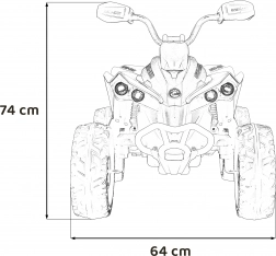 De Maverick ATV quad is gemaakt voor avontuur. Het duo van 2 × 200 W motoren in combinatie met de 24V-accu zorgt voor soepel wegrijden en voldoende kracht voor licht terrein en verharde paden. De grote wielen van EVA-schuim met lagers dempen trillingen uitstekend en hebben een zekere grip. De volledige vering (2× voor, 2× achter) met verbeterde achterveren verhoogt comfort en stabiliteit.
