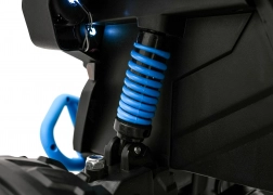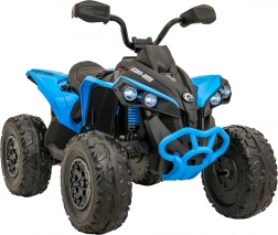 De krachtige en stijlvolle kinderquad Maverick ATV in het blauw biedt een authentieke rijervaring voor kleine avonturiers. Twee motoren 2 × 200 W, een 24 V / 5 Ah accu, grote EVA-wielen met lagers en volledige LED-verlichting zorgen voor prestaties, comfort en veiligheid. Het uitgebreide audiopaneel met MP3/Bluetooth/USB/FM en de zachte zitting van eco-leer maken rijden leuk, zowel thuis als offroad.