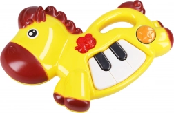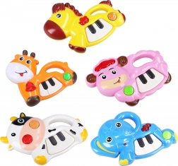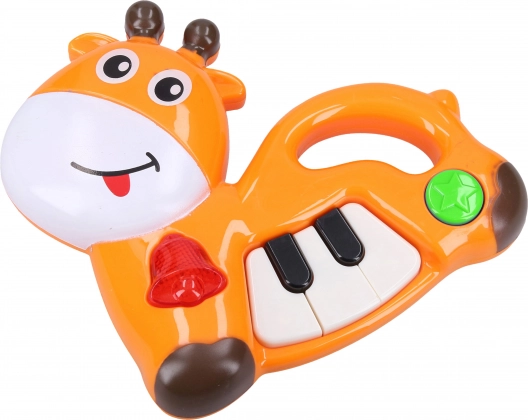 Koe, schaap, giraffe, paard of olifant – elk motief heeft een vrolijk design en een mini-klavier voor de eerste muzikale stapjes.
