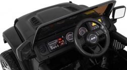 Voor comfort zorgen de onderhoudsvrije EVA-wielen 29×11,5 cm en de achtervering. De zitting van ecokunstleer met veiligheidsgordel houdt het kind stevig op zijn plaats. Ouders waarderen de 2,4 GHz afstandsbediening met drie snelheden en een noodknop STOP, die de auto indien nodig direct tot stilstand brengt.