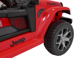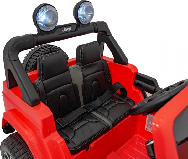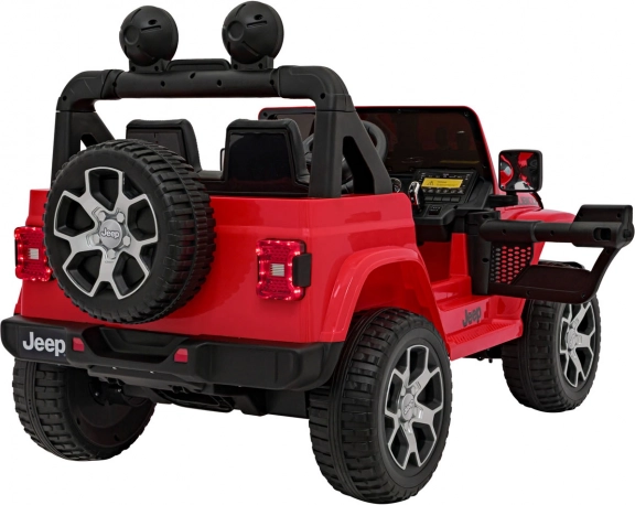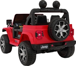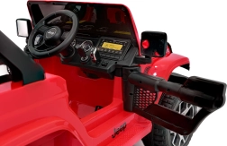Stijlvolle elektrische kinderauto JEEP Wrangler Rubicon in het rood voor een echte offroad-ervaring. Uitgerust met 4 motoren van 45 W, een krachtige accu 12 V / 10 Ah, zachte EVA-wielen en een stoel van eco-leer. De veiligheid wordt gewaarborgd door een 2,4 GHz afstandsbediening met stopknop en veiligheidsgordels. Voor extra plezier zorgen FM-radio, MP3, Bluetooth en LED-verlichting.