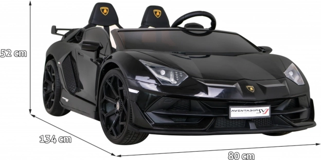 De stoere elektrische kinderauto Lamborghini Aventador SVJ voor twee kinderen biedt een driftfunctie, soepele start en 2,4 GHz afstandsbediening met nood-STOP. Dankzij de krachtige motoren 2×25000 RPM, accu 2×12 V/7 Ah, EVA voorwielen en LED-verlichting levert hij een realistische rijervaring, terwijl het MP3/USB-audiopaneel en de openende deuren jonge bestuurders blij maken.
