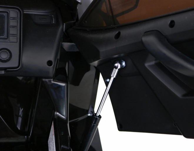 Voor comfort en veiligheid is er een brede stoel van eco-leer met veiligheidsgordels en openende deuren met slot. Ouders waarderen de 2,4 GHz afstandsbediening met drie snelheden en een noodknop STOP. De realistische beleving wordt compleet gemaakt door LED-koplampen en -achterlichten, motorstartgeluid, knoppen met melodieën en claxon en een audiopaneel met MP3/USB inclusief batterijstatusindicator.