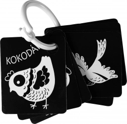 Contrasterende zwart-witte kaartjes zijn een ideale hulpmiddel voor pasgeborenen en jonge baby’s, wier zicht het best reageert op eenvoudige vormen en hoog contrast. Dankzij de praktische opening en de kunststof ring kun je de kaartjes eenvoudig boven het ledikant, aan de kinderwagen hangen of samenvoegen tot een overzichtelijke set.