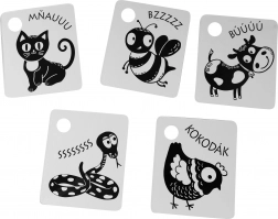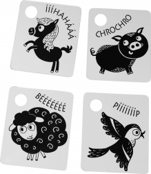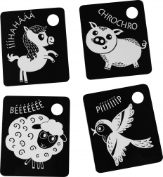 Stimuleer de ontwikkeling van je baby met contrasterende zwart-witte kaartjes, verpakt per 9 stuks en gemaakt van hoogwaardige Tsjechische materialen. Elk kaartje heeft een opening om op te hangen en in de verpakking zit een kunststof ring voor eenvoudig bundelen. De kaartjes stimuleren het zicht, ontwikkelen de fijne motoriek en de natuurlijke nieuwsgierigheid van kinderen, inclusief het herkennen van dieren.