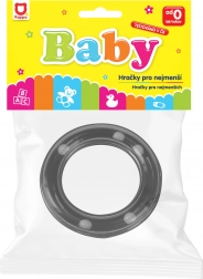 Lichtgewicht en gemakkelijk vast te houden rammelaar in de vorm van een ring, in elegante zwarte kleur. Kinderen zullen dol zijn op het zachte gerinkel, dat de aandacht trekt en de zintuiglijke ontwikkeling en fijne motoriek ondersteunt.