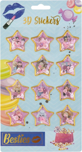 Creatieve 3D-stickers met meisjesachtig thema die elke kleine dame zullen verheugen. Bevatten 12 stickers in de vorm van sterretjes, ideaal voor het decoreren van de kinderkamer.