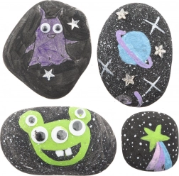 De set Schilderen op Steentjes Galaxy bevat alles wat je nodig hebt om aan je artistieke reis te beginnen. Met natuurlijke stenen en levendige kleuren kun je eenvoudige stenen omtoveren tot prachtige kunstwerken.