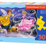 De kinderpuzzel Assepoester bevat 30 stukjes die, eenmaal gelegd, een afbeelding vormen van 32 x 23 cm. Deze puzzel is gemaakt van hoogwaardige materialen en biedt mooie kleuren die elk kind aanmoedigen om te puzzelen.