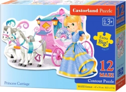 Kleurrijke kinderpuzzel met het motief van een prinsessencoach van Castorland spreekt zelfs de kleinste puzzelaars aan. De stukjes zijn groot en gemakkelijk vast te pakken, de puzzel heeft 12 stukjes en meet na het leggen 47 × 33 cm. Perfect voor kinderen vanaf 3 jaar, stimuleert fijne motoriek, geduld en concentratie.