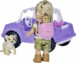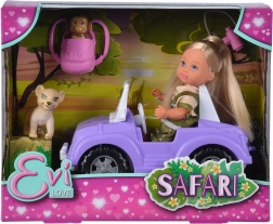 Verrijk het spel van je kinderen met *imaginaire avonturen* met pop Evička Safari. Deze fantastische set biedt eindeloze speelmogelijkheden en verbeelding dankzij de gedetailleerde accessoires. De set bevat de pop Evička in safari-kleding, met een hoogte van 12 cm, en haar terreinwagen van 16 cm lang, ideaal voor reizen door de jungle. Er ontbreekt ook geen rugzak voor alle benodigdheden, een klein aapje, een leeuwtje en een verrekijker voor gedetailleerde verkenning.