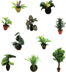 In de doos vind je kleine meubeltjes, planten en decoraties – alles klaar om te monteren en jouw unieke model af te werken.