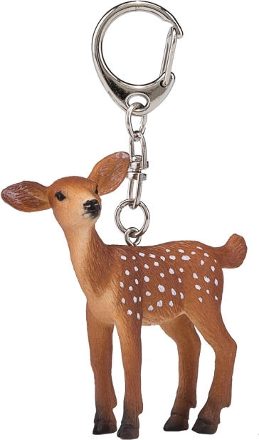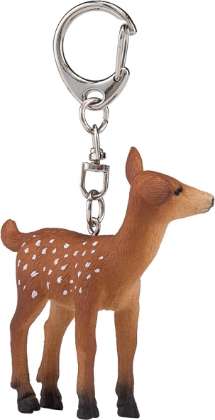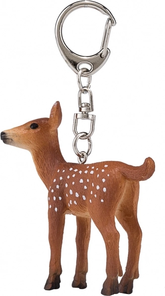 De sleutelhanger toont een klein hertenkalf met geloofwaardige details en natuurlijke kleuren.