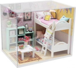 Ontdek de magie van miniaturen met de creatieve bouwset Cherylin. Deze gedetailleerde set biedt een gezellige kamer met stapelbed, boekenkast en accessoires die je zelf bouwt, lijmt en versiert. Inclusief LED-verlichting, beschermend plexiglas en een uitgebreide handleiding. Een geweldige keuze voor ontspanning en het ontwikkelen van motoriek, verbeeldingskracht en geduld.