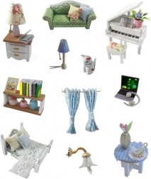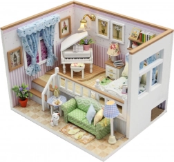 Creëer je eigen miniatuurinterieur vol realistische details – een comfortabele bank met kussentjes, een elegante piano, een bed met textiele uitrusting, lampen, plankjes en subtiele decoraties. De geïntegreerde LED‑verlichting geeft de scène een knusse sfeer en verandert je creatie in een unieke decoratie voor op de plank of het bureau.