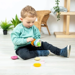 Het stapelen en sorteren van onderdelen ontwikkelt de grip, oog-handcoördinatie en concentratie. Ideale activiteit voor kinderen vanaf 1 jaar.