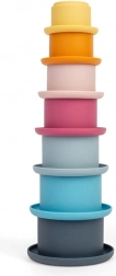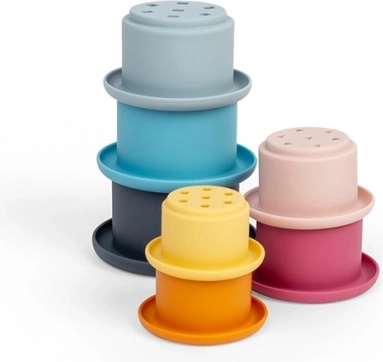 Plasticvrij 100% siliconen is zacht voor kinderhanden en tegelijk zeer bestendig tegen temperaturen en vlekken. Onderhoud is eenvoudig – warm water met mild zeep of de vaatwasser volstaat. Spelen met de bekers stimuleert motorische vaardigheden, sensorische waarneming, balans en eerste logisch denken.