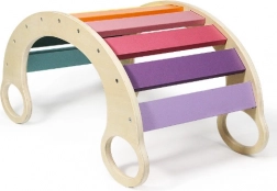 Een elegante Montessori-schommel met vrolijke regenboogkleuren die kleine, nieuwsgierige ontdekkers zal verrassen. Biedt multifunctioneel gebruik om op te zitten, te klimmen en te schommelen, traint motoriek, evenwicht en coördinatie en past dankzij de compacte afmetingen in elk interieur. Maximale draagkracht 75 kg, stabiele houten constructie en 4 praktische handgrepen voor een veilige grip.