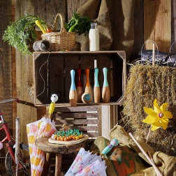 De set is geschikt voor kinderen vanaf 5 jaar en ondersteunt uitstekend de coördinatie, concentratie en fijne motoriek. Dankzij de compacte afmetingen neem je hem gemakkelijk mee op uitstapjes, picknicks of naar de tuin.