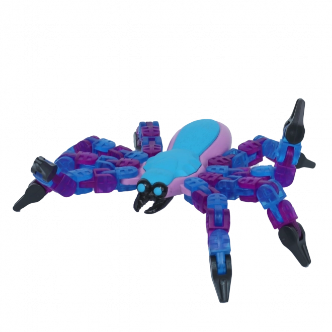 De gesegmenteerde poten en het lichaam buig je eenvoudig in talloze poses. Bij het bewegen van de onderdelen geeft het speeltje een prettig “klik”-geluid, wat sensorisch spel stimuleert.