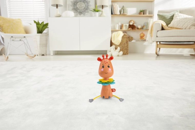 De interactieve Fisher‑Price giraf is de ideale speelkameraad voor de eerste ontdekkingen. Dankzij contrasterende kleuren, gladde en getextureerde oppervlakken en klikkende ringen prikkelt hij op natuurlijke wijze de zintuigen en motiveert hij kinderen om vast te pakken, te draaien en te schudden. Het compacte ontwerp ligt goed in kleine handjes en is geschikt voor thuis en onderweg.
