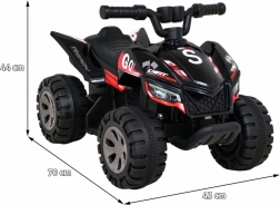 Lichte en duurzame elektrische kinderquad op accu biedt plezierige ritten voor kleine avonturiers. Dankzij de 25 W motor, 6 V / 4,5 Ah accu en eenvoudige bediening via de gashendelknop in het handvat is hij ideaal voor de eerste ervaringen met elektrische voertuigen. De stabiele constructie, kunststof wielen 20 × 10 cm en een draagvermogen tot 30 kg zorgen voor veilig rijden, zowel binnen als buiten.