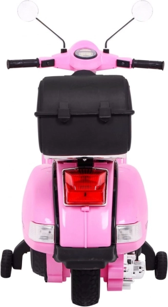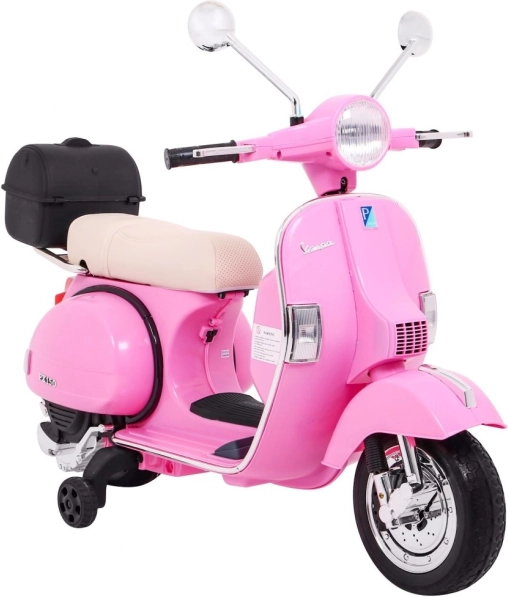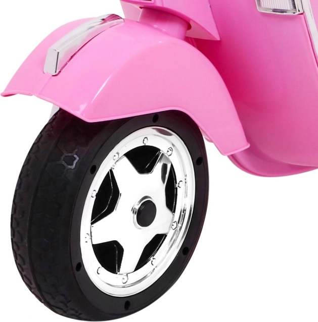 De elegante roze look en realistische details geïnspireerd door de klassieke Vespa maken deze scooter tot een stijlvolle toevoeging aan elke kinderrit.