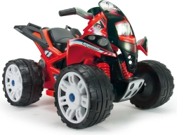 Bovendien kunnen kinderen genieten van een rit met een snelheid tot 4-5 km/u, onder toezicht van volwassenen dankzij geïntegreerde veiligheidsvoorzieningen zoals een elektrische rem die de quad stopt bij het loslaten van het gaspedaal.