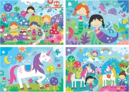 Met de nieuwe set Magische Vrienden 4-in-1 geeft EDUCA kinderen de kans hun puzzelvaardigheden te verbeteren. Elke van de vier puzzels heeft afmetingen van 28 x 20 cm en een verschillend aantal stukjes, waardoor de moeilijkheidsgraad bij elke volgende puzzel toeneemt: