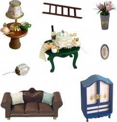 Inclusief miniatuurmeubels en decoraties die je eenvoudig monteert en rangschikt. Elk detail benadrukt de realistische uitstraling van het voltooide model.