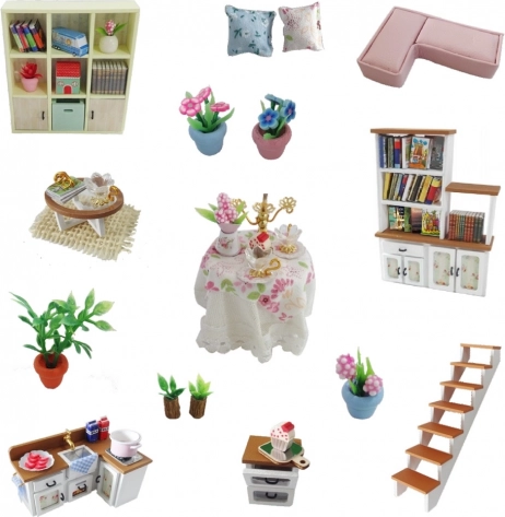 - Gedetailleerde accessoires – meubels, bloemen, speelplaats, decoraties en andere miniaturen.
