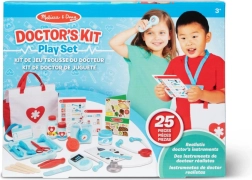 Deze Melissa doktersset voor kinderen biedt alles wat een kleine arts of verpleegkundige nodig heeft: stethoscoop, thermometer, injectiespuit, schaar en andere hulpmiddelen in aantrekkelijke kleuren. Kinderen kunnen veilig rollenspelscenario’s uitproberen, basiszorg leren en empathie ontwikkelen.