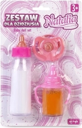 Ontdek de magie van vadertje- en moedertje-spelen met de set Magische fles Natalia. Bij het kantelen van het flesje met “melk” of de beker lijkt de vloeistof te verdwijnen, waardoor het lijkt alsof je pop echt drinkt. Ideaal voor het stimuleren van de fantasie, het oefenen van zorgtaken en de fijne motoriek.