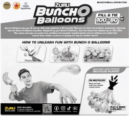 De waterballonnen van Bunch O Balloons maken gebruik van O-Ring-technologie en bieden snel vullen. Sluit ze aan op de kraan of tuinslang en in minder dan 60 seconden heb je 100 waterbommen klaar! Gooi ze naar je vrienden of gebruik de aerodynamische werper, die ze tot een hoogte van 22 meter lanceert!