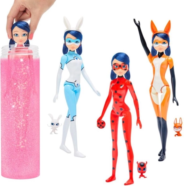 Met deze geweldige Marinette pop duikt uw kind in de wereld van superhelden. Magic Heroez Transformation onthult geheimen met water. In elke capsule wacht Marinette in drie unieke kostuums - vos, konijn of lieveheersbeestje.