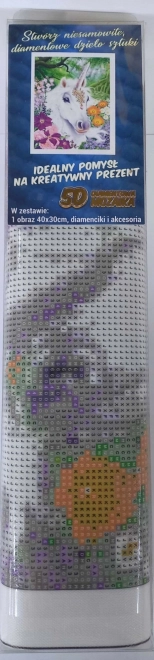 Diamantschilderen is een unieke manier om te ontspannen en creatief bezig te zijn. Met het eenhoorn-in-bloemen-motief maak je een glinsterend kunstwerk dat je na afloop kunt inlijsten en tentoonstellen. De werkwijze is eenvoudig: met behulp van de pen en was plak je de gekleurde steentjes op de gemarkeerde vakjes van het canvas.