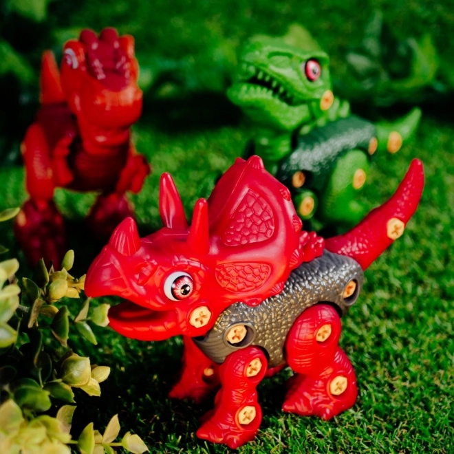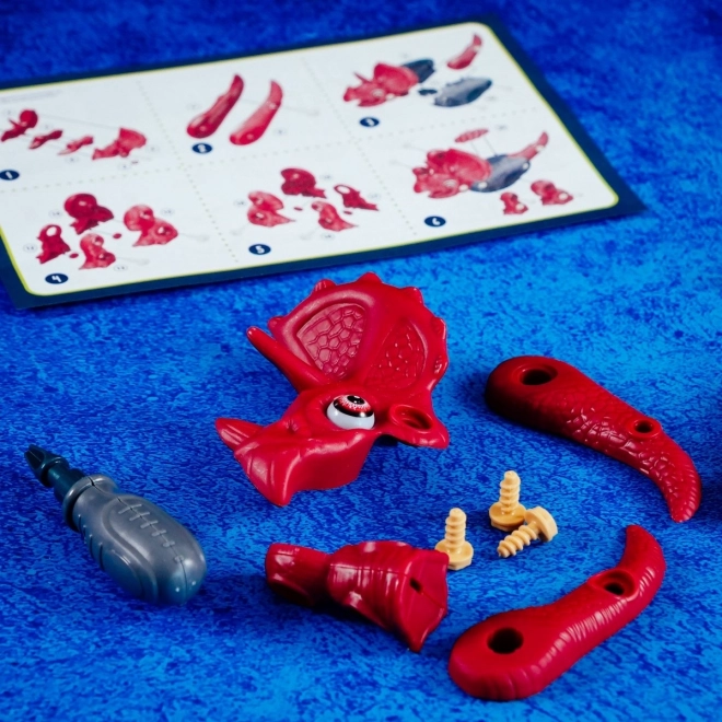 Met deze constructieset kunnen kinderen hun eigen bewegende triceratops model bouwen van plastic onderdelen die in de verpakking zitten. Dankzij de wielen onder de poten kan de dino bewegen, wat het plezier en de interactiviteit vergroot.