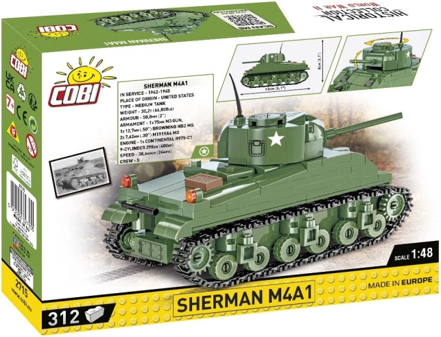 COBI M4A1 SHERMAN 1:48 – hoogwaardige bouwset met draaibare koepel, beweegbaar kanon en duurzame prints. 312 onderdelen, compatibel met andere merken.