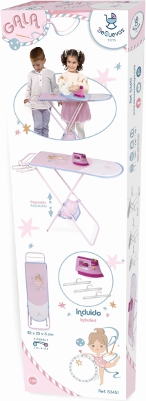 Speelse opvouwbare strijkplank voor poppen uit de GALA-collectie, perfect voor elke kleine huisvrouw. Biedt een verstelbare hoogte in 3 niveaus, eenvoudige bediening en uitgebreide accessoires voor realistisch spel – een plastic strijkijzer, kleerhangers en een praktisch stoffen mandje. Het geweldige design en de precisie-afwerking stimuleren creatief spelen vanaf 3 jaar.
