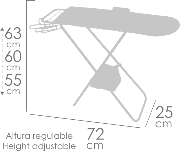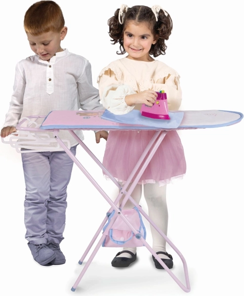 De set bevat praktische accessoires voor compleet spel – een plastic strijkijzer, 3 kleerhangers voor jurkjes en een stoffen mandje dat aan het frame is bevestigd. De plank is opvouwbaar, gemakkelijk te dragen en op te bergen, en door de kwaliteitsmaterialen (metaal, kunststof, textiel) geschikt voor dagelijks gebruik.