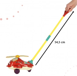 Deze duw helikopter op een gele stang is eenvoudig te bedienen en beschikt over bewegende onderdelen zoals propellers en wielen, die zowel visuele als auditieve stimulatie bieden. Het spelen met de helikopter verbetert de motorische vaardigheden van kinderen en biedt veel plezier, zowel binnen als buiten.
