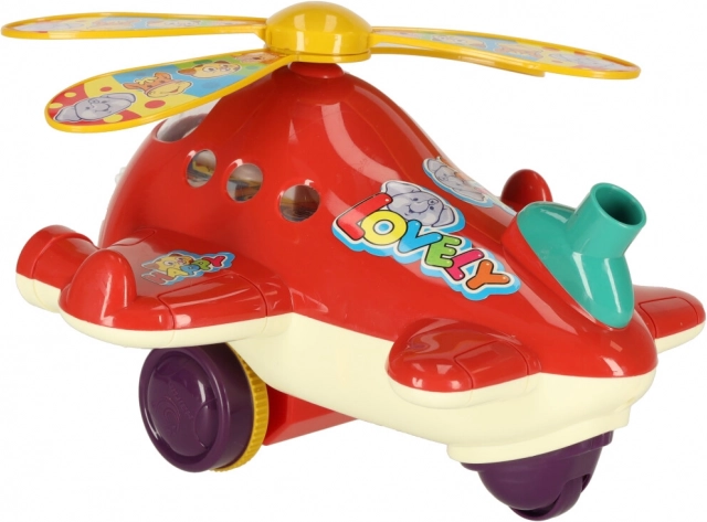 Spelen met de helikopter bevordert de ontwikkeling van motoriek en coördinatie van bewegingen van het kind. Het is een geweldige hulp bij het leren lopen, terwijl het visueel en auditief stimuleert.
