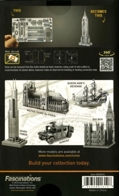 METAL EARTH 3D puzzel Empire State Building is ideaal voor diegenen die houden van het aanzicht van een complex model vol met details. Deze modelset van de premium ICONX-serie onderscheidt zich door zijn fijne precisie en hoog niveau van authenticiteit. Het is gemaakt van metalen platen en vereist vaardige handen en geduld.