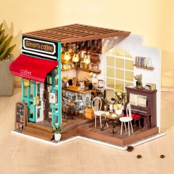 Ontdek de wereld van creatieve bouwsets, waar elk stukje met je eigen handen tot leven komt. Het miniatuurcafé blinkt uit met een rijke uitrusting, authentieke texturen en LED-licht dat een prettige sfeer creëert. Ideaal als cadeau voor creatieve zielen en als stijlvolle woondecoratie.