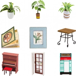 Van meubels en planten tot een piano – de set bevat tal van miniatuuronderdelen voor maximale authenticiteit.
