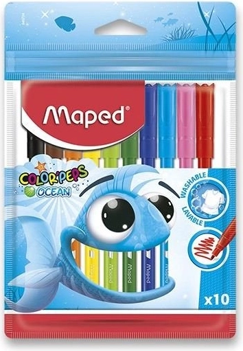 Ontdek betrouwbare school- en creatieve viltstiften die zowel kinderen als volwassenen zullen aanspreken. Maped Color'Peps Ocean bieden intense en levendige kleuren, zijn gemakkelijk van de huid af te wassen en uitwasbaar uit de meeste textielsoorten, zodat je niet bang hoeft te zijn voor ongewenste vlekken.