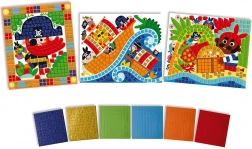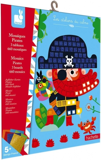 Mozaïek voor alle kleine piraten. Een prachtige mozaïek met kleurrijke afbeeldingen bevat 6 vellen met glinsterende en gekleurde mozaïekstickers. De mozaïek stimuleert de tastzin van het kind. In de verpakking zitten 3 piratenafbeeldingen (afmetingen 25 x 21 cm). Geschikt voor kinderen vanaf 5 jaar. De Janod Atelier-set ondersteunt creativiteit, vaardigheden en verbeeldingskracht bij kinderen. Creatief speelgoed neemt niet veel ruimte in, is geschikt voor onderweg en thuis, in goede en minder goede tijden, en houdt kinderen urenlang bezig. Creëren met verschillende technieken bevordert focus en concentratie, natuurlijke nieuwsgierigheid en artistieke vaardigheden.