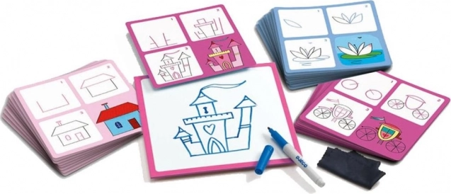 Wil je leren tekenen? Denk je dat het onmogelijk is? Het tegendeel is waar – tekenen is helemaal niet moeilijk. Het is genoeg om een paar geweldige trucjes te leren die je met deze set ontdekt. Een prinses, een waterlelie of een kasteel tekenen wordt zo helemaal geen probleem. Aan de slag!