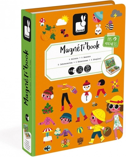 Ontdek de creatieve wereld met de magnetische Janod Magnetibook – seizoenen. Kinderen maken scènes en kleding na voorbeeldkaarten en leren zo lente, zomer, herfst en winter herkennen. Met 115 magnetische onderdelen en een praktische verpakking is het speelgoed ideaal voor thuis en onderweg. De hoogwaardige afwerking en veilige, niet-giftige verf maken het een tijdloze keuze voor kinderen vanaf 3 jaar.